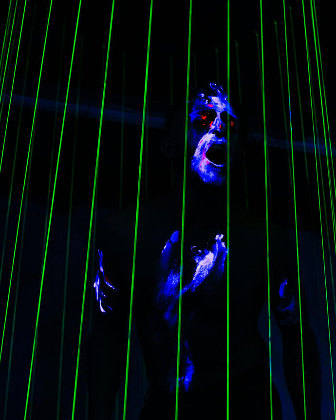 For this project my role is lead actor, concept designer for the body art and the fluorescent scenography,